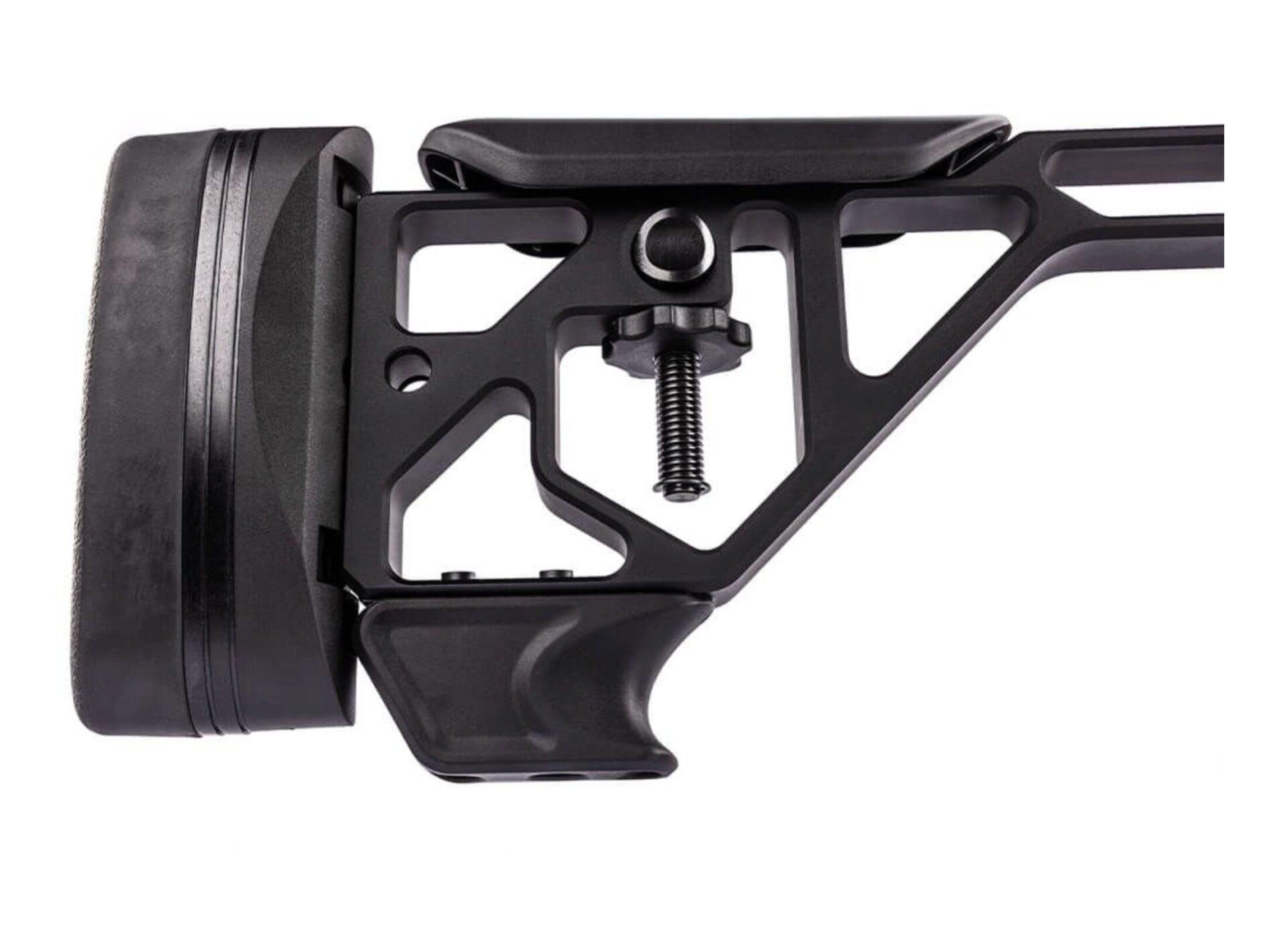 - Verstelbaar skeletachterstuk met instelbare kolflengte, wangsteun en recoil pad